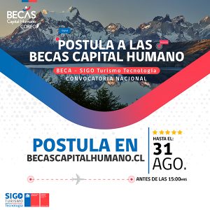 Para acceder al curso los interesados deben postular hasta el 31 de agosto en www.becascapitalhumano.cl y podrán optar a una de las 760 becas de cofinanciamiento de 90%, donde los seleccionados sólo pagarán una matrícula de $30.395 pesos. Finalizado el curso, que se ejecutará entre los meses de septiembre y diciembre del año 2020 y que será impartido por la OTEC “Tu Clase, Tu País” en conjunto a “Turismo Región”, los beneficiarios que egresen y aprueben la evaluación final obtendrán la distinción SIGO de Sernatur.
