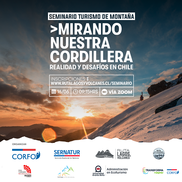 Un revolucionario plan que tiene por objetivo poner en valor nuestras montañas desde una mirada sustentable, será uno de los temas que se abordará en el Seminario de Turismo de Montaña: “Mirando nuestra cordillera, realidad y desafíos en Chile”, que se realizará el próximo 16 de junio desde las 09:15 horas de manera virtual, con foco en el creciente turismo de aventura y naturaleza de montaña de Chile.