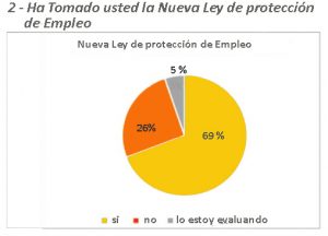En el caso de la reducción de jornada laboral, según el número de trabajadores que tiene cada empresa consultada, el 65% indicó que no ha realizado ninguna reducción, mientras que un 6% afirmó que la redujo en un 100%, y un 4% señaló haberla rebajado un 50%.