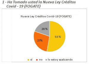 La misma encuesta de Fedetur consultó por los créditos Covid. Un 53% de los encuestados indicó que había solicitado el crédito, mientras un 27% no lo ha hecho y un 20% lo está evaluando.