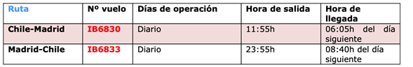 Para la nueva temporada, que comienza el 31 de octubre, la aerolínea española ha programado siete vuelos semanales entre Santiago de Chile y Madrid, lo que evidencia el compromiso y la apuesta de Iberia en este mercado, que ya se encuentra dentro de la lista de países seguros de la Unión Europea.