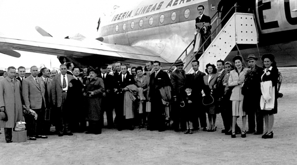 75 años de la primera ruta trasatlántica, concretamente, a Buenos Aires tras 36 horas de vuelo a bordo del avión Douglas modelo DC-4