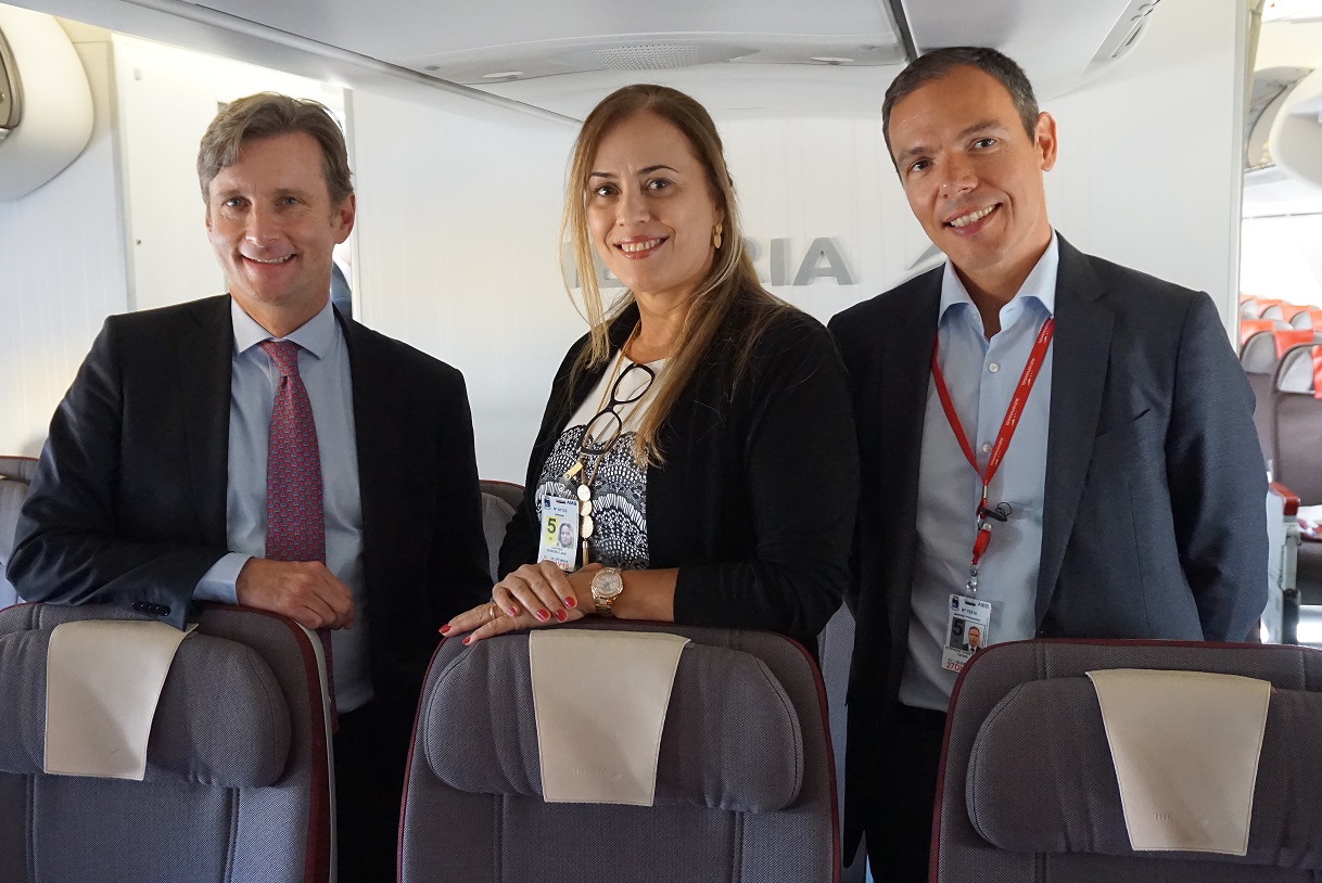 Frédéric Martínez – director de Iberia para Latino América, Carmen Moreira – country manager de Iberia en Chile y Stephane Taysse – chief communicatons officiers Santiago Aiport.