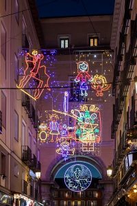 Nuevo es también el gran abeto luminoso instalado en la céntrica Puerta del Sol con casi 37 metros de altura y decorado con nada menos que 245.000 puntos de luz de bajo consumo. Otro espectacular diseño iluminado es el Ángel de Madrid, que se encuentra en la Plaza de Colón o el Gran Belén iluminado que este año se ha instado en la confluencia de las calles Alcalá y Gran Vía.