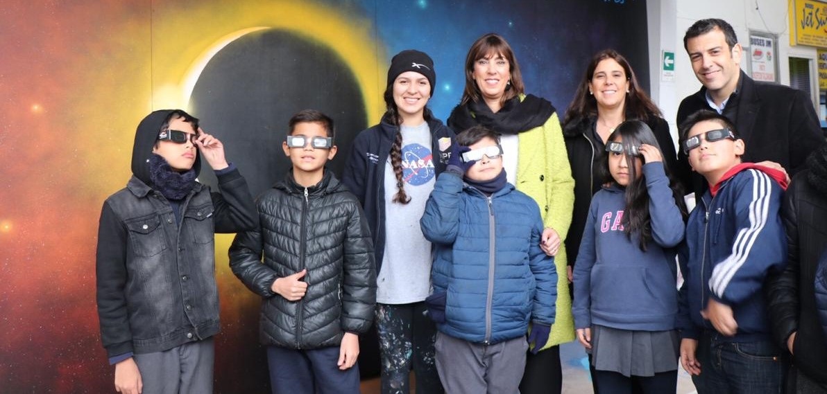 Autoridades de Turismo y municipales presentaron un mural en el Terminal de Buses Estación Central, el cual fue desarrollado con el fin de relevar el fenómeno natural que será visible el próximo 2 de julio en Chile.