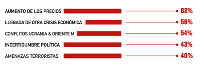El principal riesgo percibido por las agencias de viajes para los próximos meses es el aumento de los precios, dado que es catalogado como una amenaza por el 82% de los profesionales consultados.