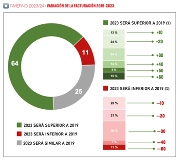 Comparando con el año previo a la pandemia, el 64% de las agencias estiman que su facturación será claramente superior en 2023.