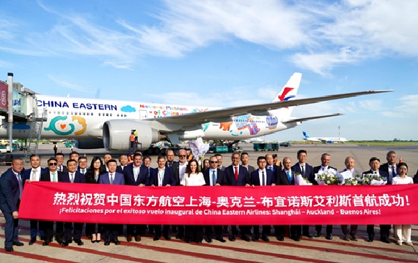 China Eastern Airlines es una de las tres principales aerolíneas estatales de China y un importante transporte aéreo a nivel mundial. La ruta inaugurada, que incluye una escala técnica de dos horas en Auckland, Nueva Zelanda, es operada por aviones Boeing 777, equipados con 6 suites de first class, 52 asientos en business y 258 en economy. El viaje tendrá una duración de aproximadamente 25 horas.