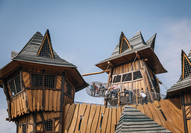En el Parque forestal de aventuras hay casitas fabulosas instaladas en árboles, deslizaderos y tubos pasadizos. En el Mundo de la arena, los niños disfrutarán del ambiente del auténtico Oeste con las casitas típicas para una película tipo western.