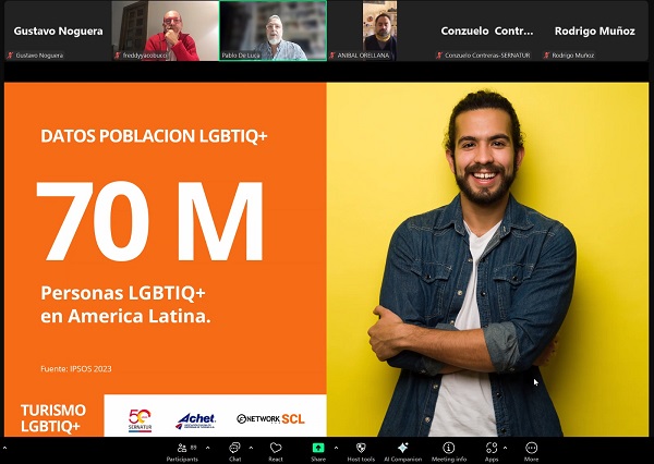 Santiago, mayo 2025.- Sernatur, ACHET y Gnetwork360 SCL llevaron a cabo un Taller digital sobre Turismo LGBTIQ+ Oportunidades para Chile, donde se congregaron más de un centenar de asistentes de múltiples localidades de Chile, de norte a sur y de este a oeste, para analizar conceptos de este segmento y explorar las oportunidades para Chile.